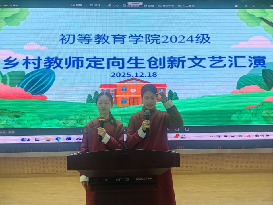 12月18日下午,在图文信息中心小报告厅里,初等教育学院2024级小学教育专业的66名乡村教师定向生,正在将自己与众不同的生命活力展现于这个舞台。